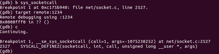 在gdb中把断点设在sys_socketcall,在menuOS里执行replyhi