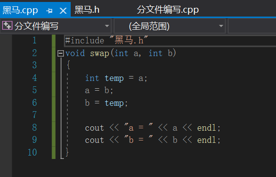 在头文件中选择创建后缀为.h的新项目,然后在里面写函数声明 :