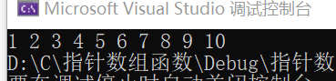 1 #include <iostream> 2 using namespace std; 3 int main() { 4 int arr[] = { 1,2,3,4,5,6,7,8,9,10 }; 5 int* p = arr; //指向数组的指针,数组名就是数组的首地址 6 cout << "第一个元素: " << arr[0] << endl; 7 cout << "指针访问第一个元素: " << *p << endl;//数组地址和第一个元素地址一样 8 for (int i = 1; i <= sizeof(arr) / sizeof(arr[0]); i++) 9 { 10 cout << "数组第" << i << "个数字为" << *p << endl; 11 p++;//因为指针类型与数组一样,所以指针每偏移一次,解引用时对应数组元素加一或减一,这里是让P往增加四个字节,也就是让p指向arr的地址往右偏移四个字节 12 } 13 return 0; 14 }