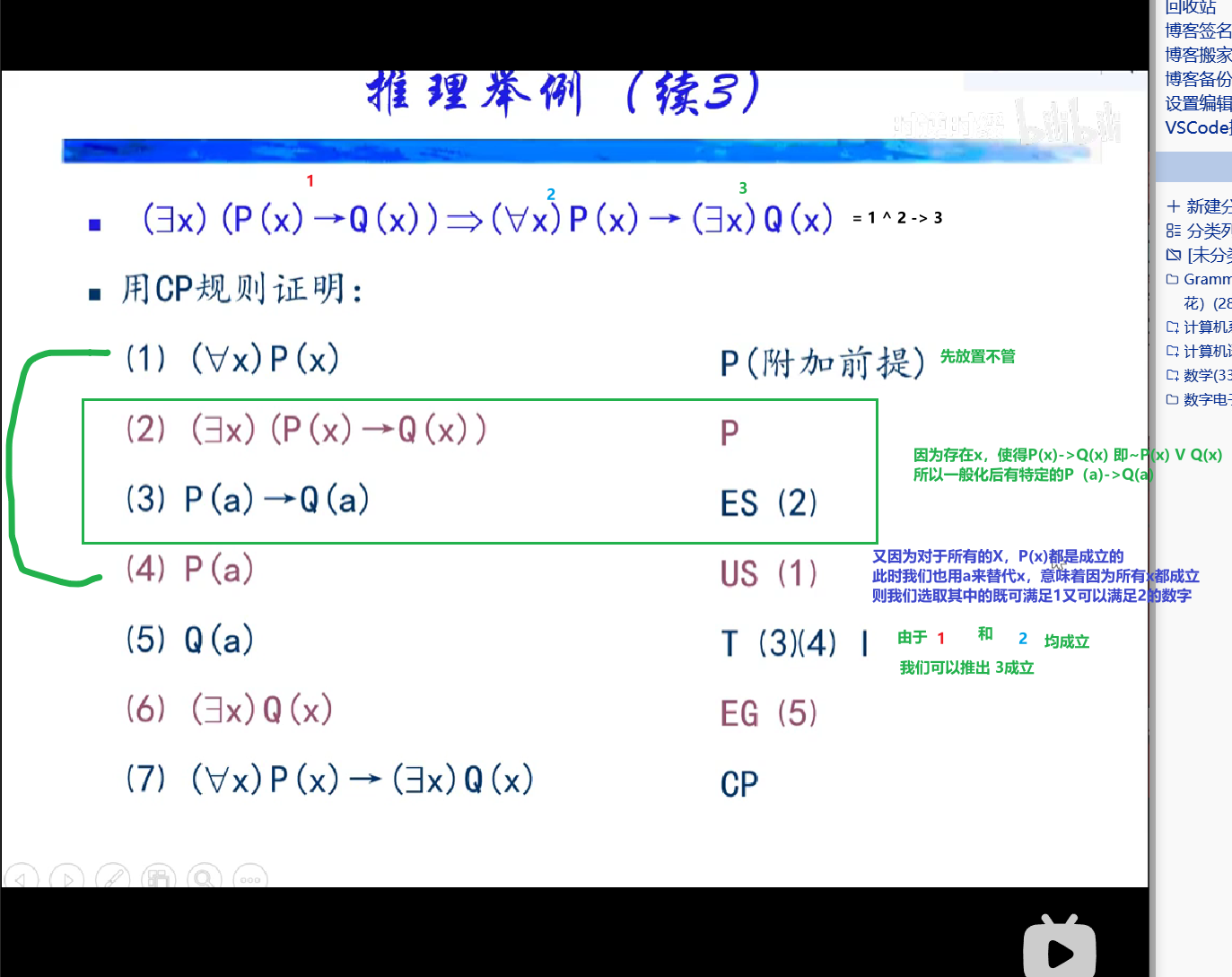 CP(Conditional Proof)规则,若证明A⇒B→C, B可作为附加前提引入。通俗点说,就是咱在做证明题时,看到待证结论是B→C这样的,把B当做前提来用,这就是CP规则。