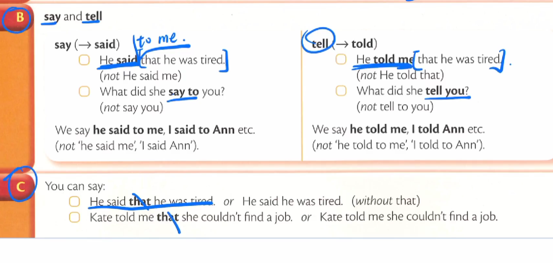 名词从句 ;; 转述他人话语