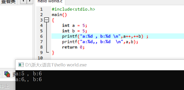 1 #include<stdio.h> 2 main() 3 { 4 int a = 5; 5 int b = 6; 6 int temp; 7 temp = a; 8 a = b; 9 b = temp; 10 printf("a=%d , b=%d \n",a,b) ; 11 return 0; 12 }