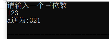 1 #include<stdio.h> 2 main() 3 { 4 printf("请输入一个三位数\n"); 5 int a; 6 scanf("%d",&a); 7 int b = a%10; 8 int c = a/10%10; 9 int d = a/100; 10 printf("a逆为:%d\n",b*100+c*10+d);//如果是按顺序输出bcd的话,碰到形如700的就会输出007而不是7,所以的用现在的方法 11 12 }