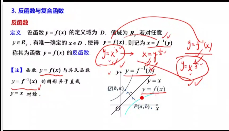 一一对应:若x1!=x2,则y1!= y2(只有一一对应函数才有反函数)
