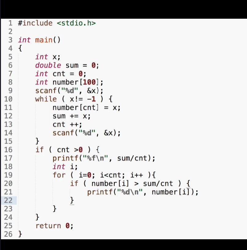 1 #include<stdio.h> 2 int main() 3 { 4 int count[10]; 5 int i,x; 6 scanf("%d",&x); 7 for(i=0;i<10;i++) 8 { 9 count[i]=0; 10 } 11 while(x!=-1) 12 { 13 if(x>=0 && x<= 9) 14 { 15 count[x]++; 16 } 17 scanf("%d",&x); 18 } 19 for(i=0;i<=9;i++) 20 { 21 printf("count[%d]出现的次数为: %d\n",i,count[i]) ; 22 } 23 return 0; 24 }