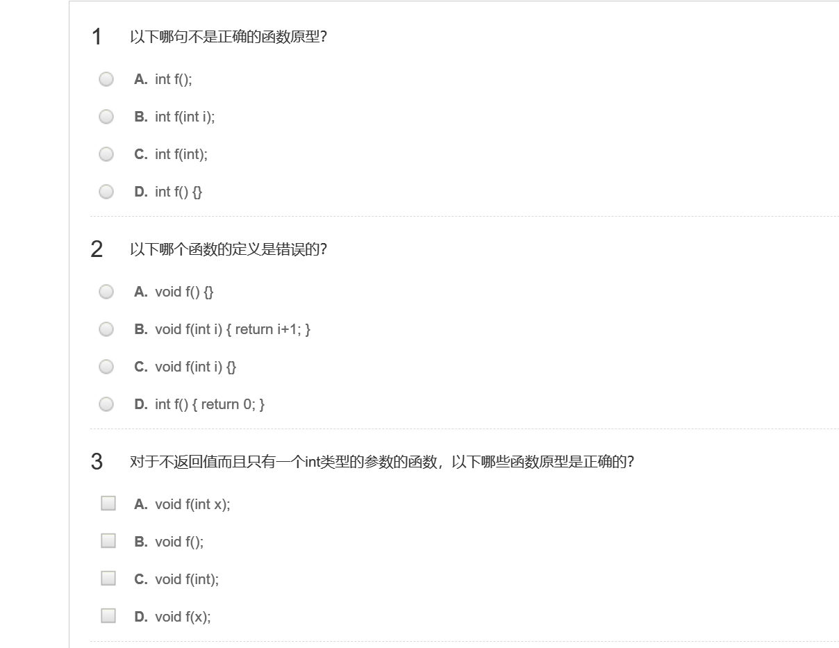 这是不好的,原型里一定要把函数写全,如果是确定没有函数一定要把void写进去
