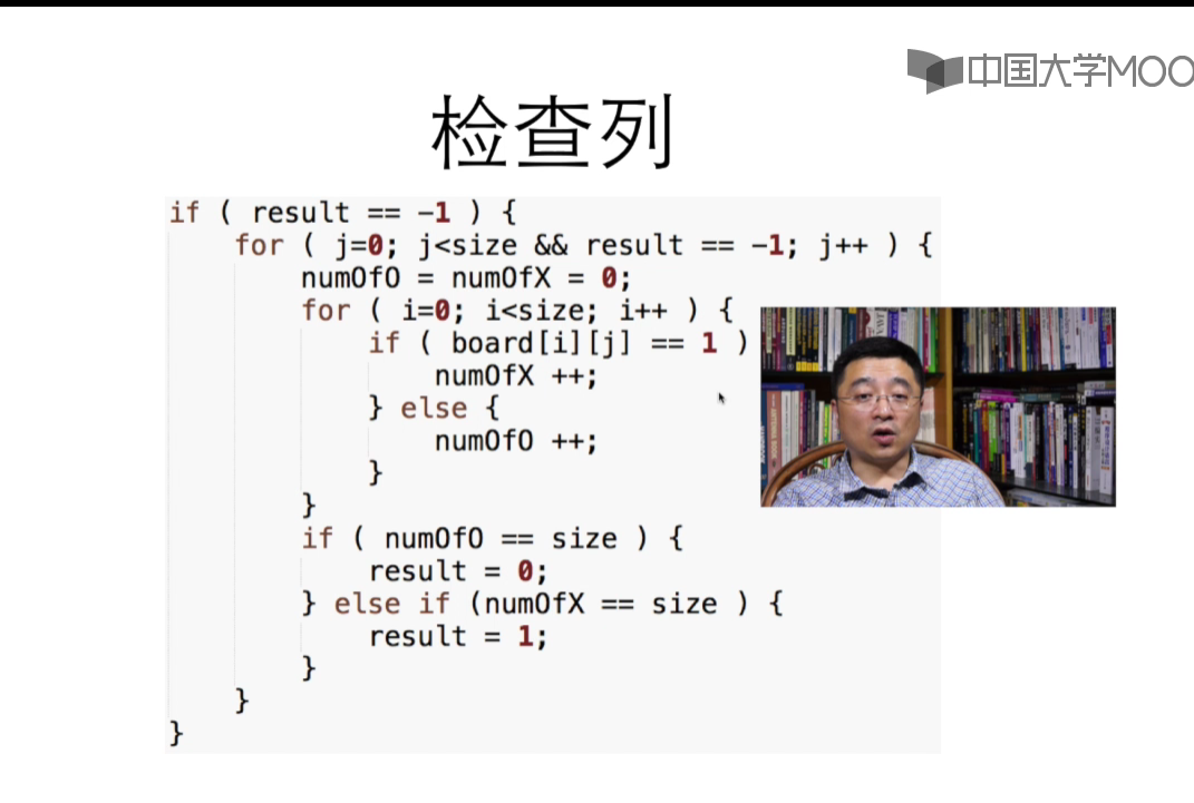 视频中所说的用一个两重循环实现行和列的检查该怎么做?