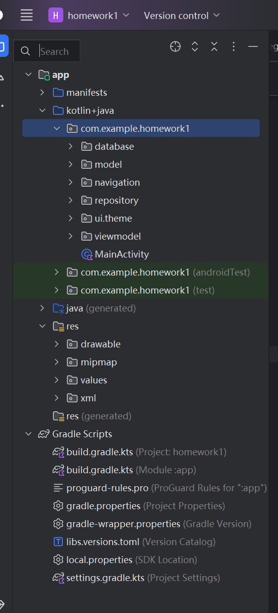 手机显示的页面为ui.theme,而在交互的过程中会调用viewmodel再到dao层再到数据库