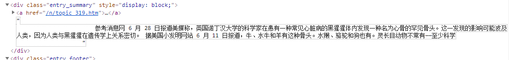 但是,提取摘要的时候遇到了一个坑。估计是返爬的一个手法?位于<div class="entry_summary"标签里。如下图所示: