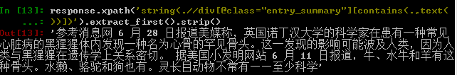 貌似无解了?我又继续网上搜索答案,路人甲的一篇文章给我了思路。他在文章里说,尽量用contains(.),而不是//text()。因为前者会把空格回车和文字作为一个整体提取,属于模糊查询,从而可以结合string()方法来获得文本,也可以结合.strip()去除多余的空格回车。而//text()得到的是一个列表。里面的元素分开了。