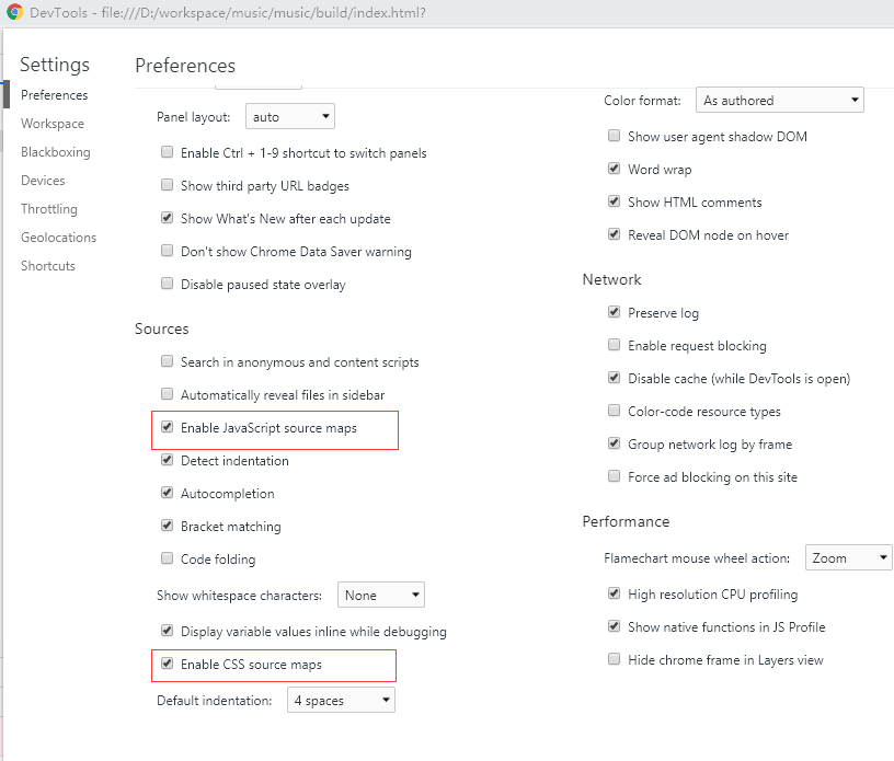 chrome浏览器,在Developer Tools的settings中设置,将enable javascript source maps 和enable css source maps勾选(默认有)这样浏览器就支持source maps了。