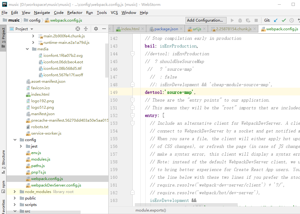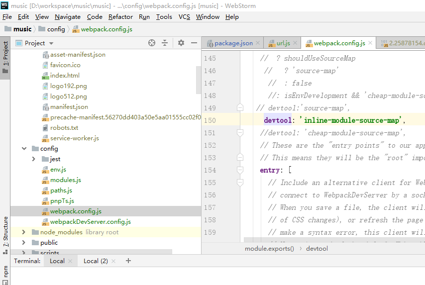 然后是生成map文件 ,在webpack.config.js中设置devtool:‘source-map’,