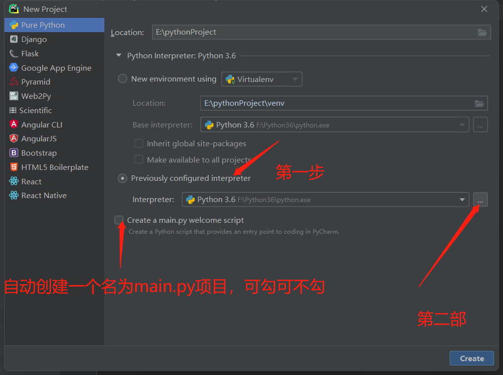 6.选择第一步,然后第二步右边三个点选择安装在自己电脑下的python解释器,