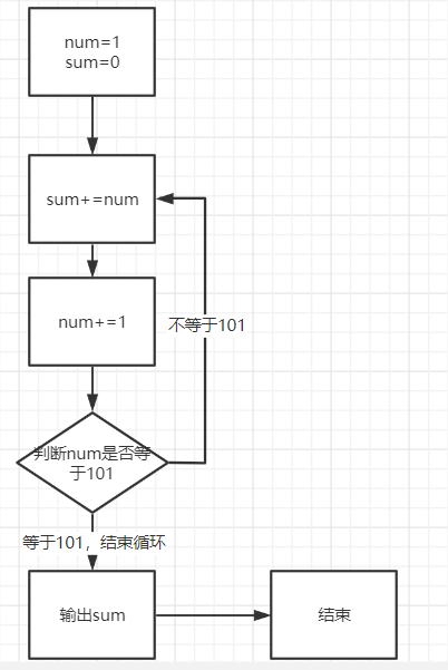 num=1 sum=0 while True: sum=num+sum num=num+1 if num==101: break # 计算1到100间的和 到101的时候直接结束循环 print(sum)