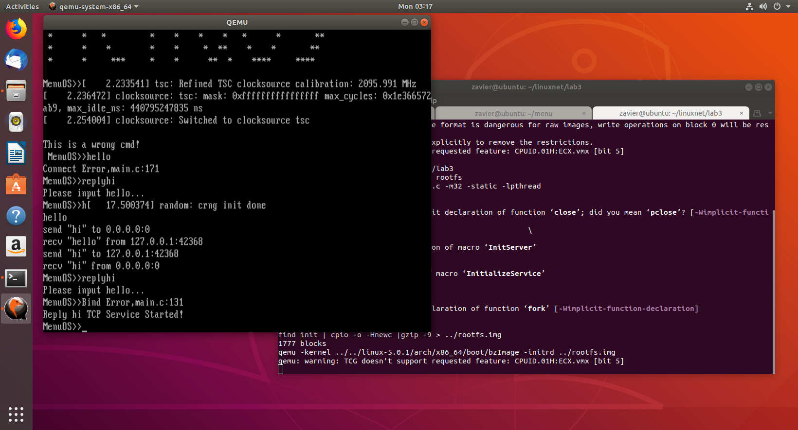 集成TCP的客户端需要修改Makefile中的qemu所在的命令行,同上。修改后