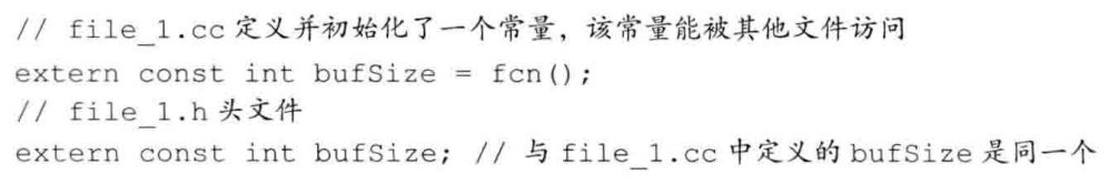 - 默认情况下,const对象仅在文件内有效,当cosnt变量的初始值是常量表达式且多个文件出现了同名的cosnt变量时,相当于在不同文件中分别定义了独立的变量。