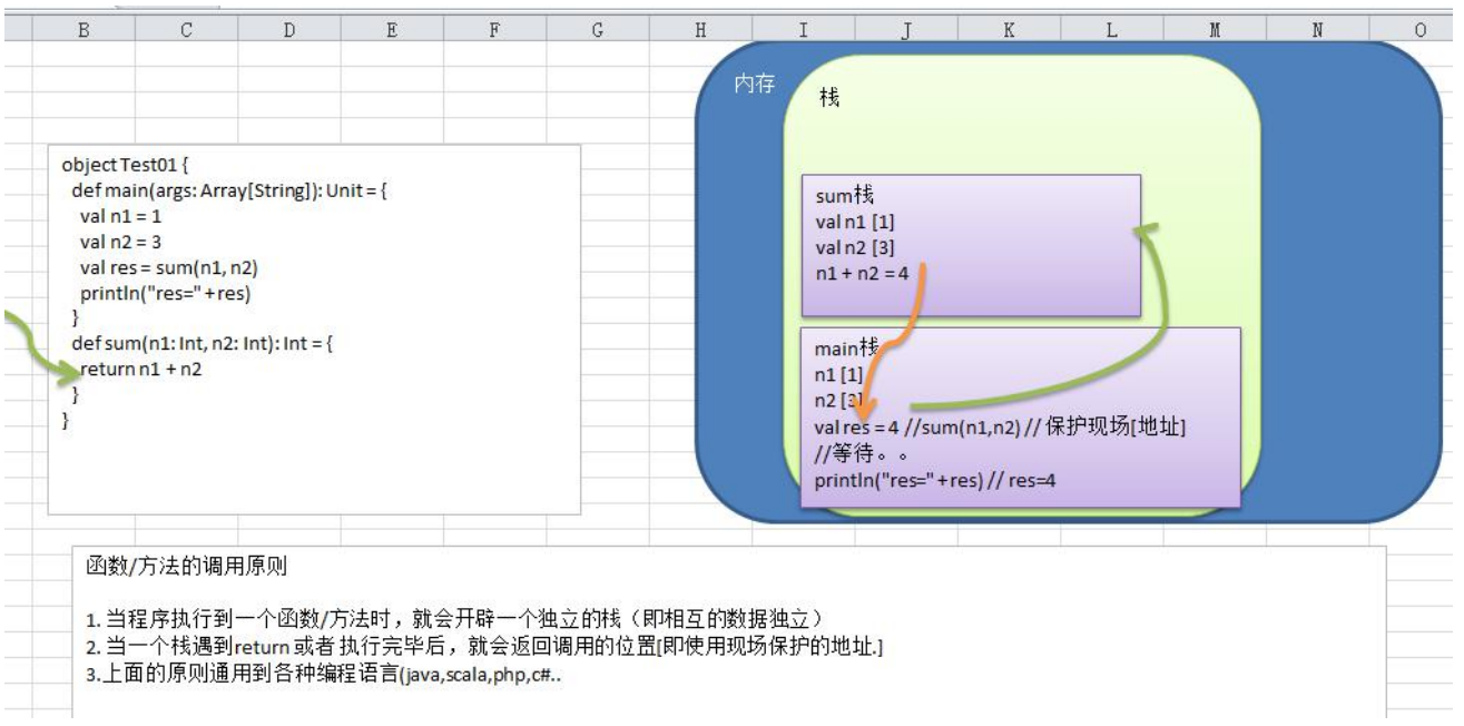 - Scala 语法中任何的语法结构都可以嵌套其他语法结构(灵活) ,即 :函数/方法中可以再声明/定义函数/方法, 类中可以再声明类。