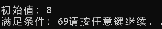 1 #include<stdio.h> 2 #include<stdlib.h> 3 #include <time.h> 4 int main() 5 { 6 int i,j,k,a,b,y[10]; 7 8 srand (time(0)); 9 i=rand()%10+1; 10 printf("初始值:%d\n",i); 11 12 for(i,k=1;k!=0;++i) 13 { 14 a=i*i; 15 b=i*i*i; 16 for(j=0;j<10;++j) 17 { 18 if(a) 19 { 20 y[j]=a%10; 21 a/=10; 22 } 23 else if(b) 24 { 25 y[j]=b%10; 26 b/=10; 27 } 28 else 29 break; 30 } 31 if(j<10) 32 continue; 33 else 34 for(j=0;j<10;++j) 35 { 36 for(a=0;a<10;++a) 37 if(y[j]==y[a]&&j!=a) 38 break; 39 if(a<10) 40 break; 41 } 42 if(j==10) 43 { 44 printf("满足条件:%d",i); 45 k--; 46 } 47 } 48 49 system("pause"); 50 return 0; 51 }