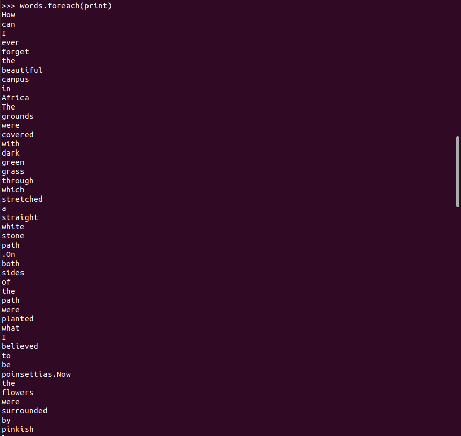 >>> words.foreach(print)