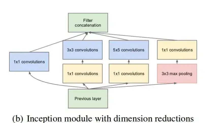 - 大卷积核计算复杂度较大\({\to}\)先采用1x1卷积将特征的channel数降低,再进行前面所说的卷积(“瓶颈层”设计)。