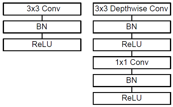 基本结构单元是深度级可分离卷积(depthwise separable convolution):