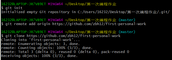一.先在github中创建first-person-work的库,再将库克隆到本地
