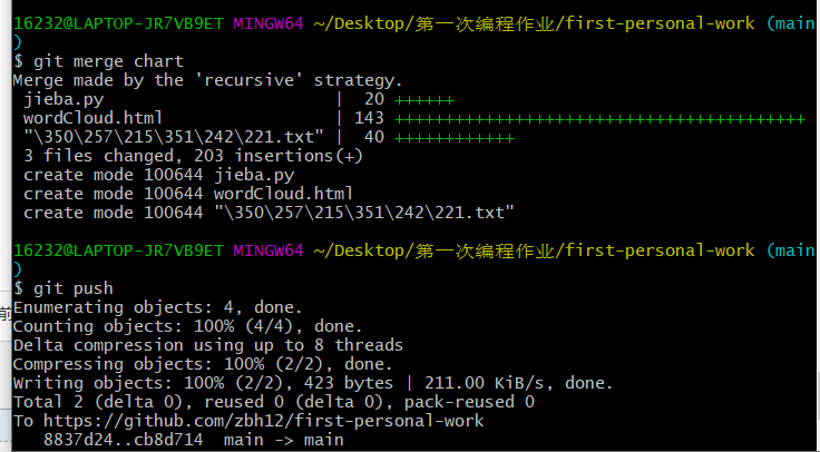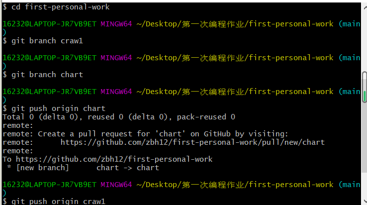 | 作业源代码 | https://github.com/zbh12/first-personal-work |
