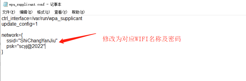 ①、通过OTG的U盘模式,打开U盘中的wpa_supplicant.conf文件设置WIFI账号及密码