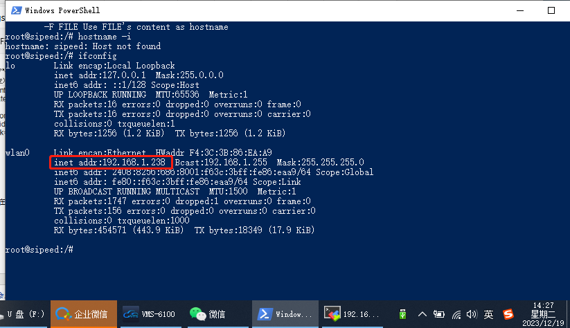 ②、在adb shell 上查找到板块对应的IP地址(ifconfig)