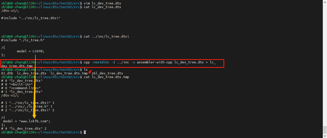 3.1、预编译命令(使用cpp 工具将xxx.dts文件中的头文件展开,生成一个临时文件xxxx.dtb.dts.tmp)