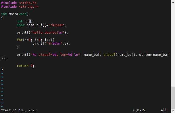 vi test.c