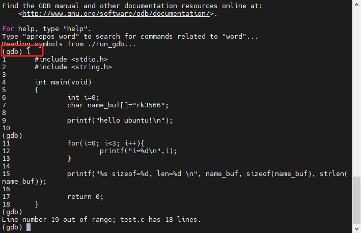- (gdb)list/l 显示源程序代码内容