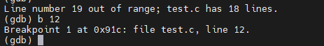 - (gdb)break/b xxx 设置代码断点,xxx为代码行数值