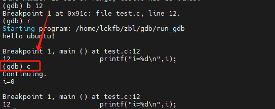 - (gdb)continue/c 在断点暂停后,使用该指令继续执行