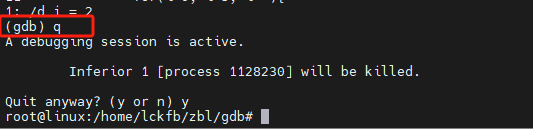- (gdb)quit/q 终止调试