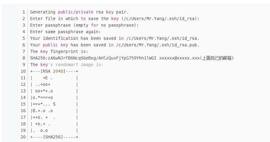 最后在.ssh目录下得到了两个文件:id_rsa(私有秘钥)和id_rsa.pub(公有密钥)