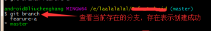 创建成功后还是存在当前分支。建议在项目中可以根据不同功能创建不同分支。