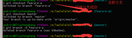 删除分支:git branch -D 分支名;(这里的-D是彻底删除,当然还有-d)