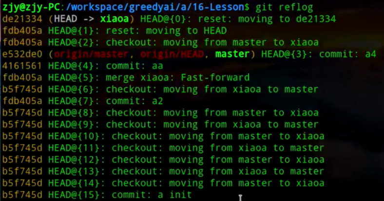 - git reflog 会记录以前的所有版本信息: