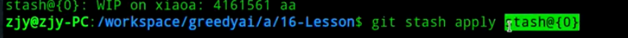 - git stash apply 暂存区号