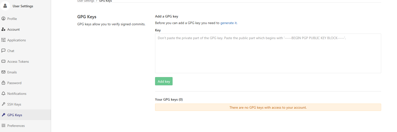 这要求将本地的公钥上传到gitlab中,如下图