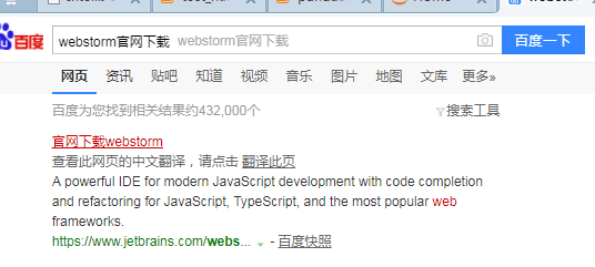 1、首先在百度上搜索 webstorm官网下载