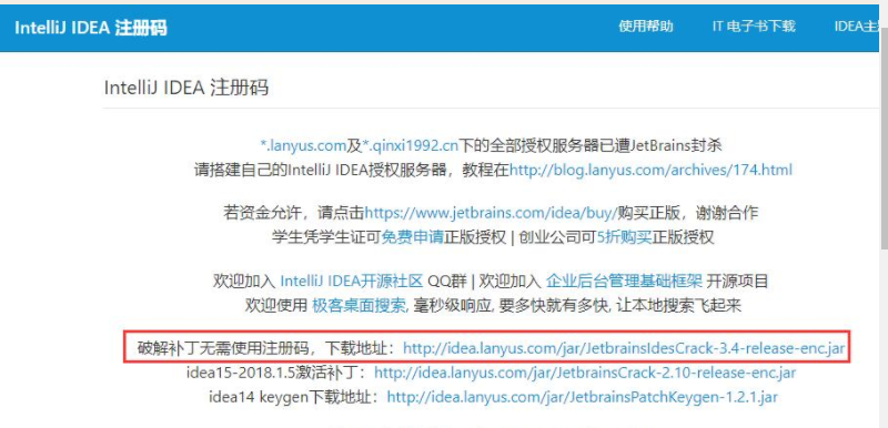 5、下载补丁 http://idea.lanyus.com/