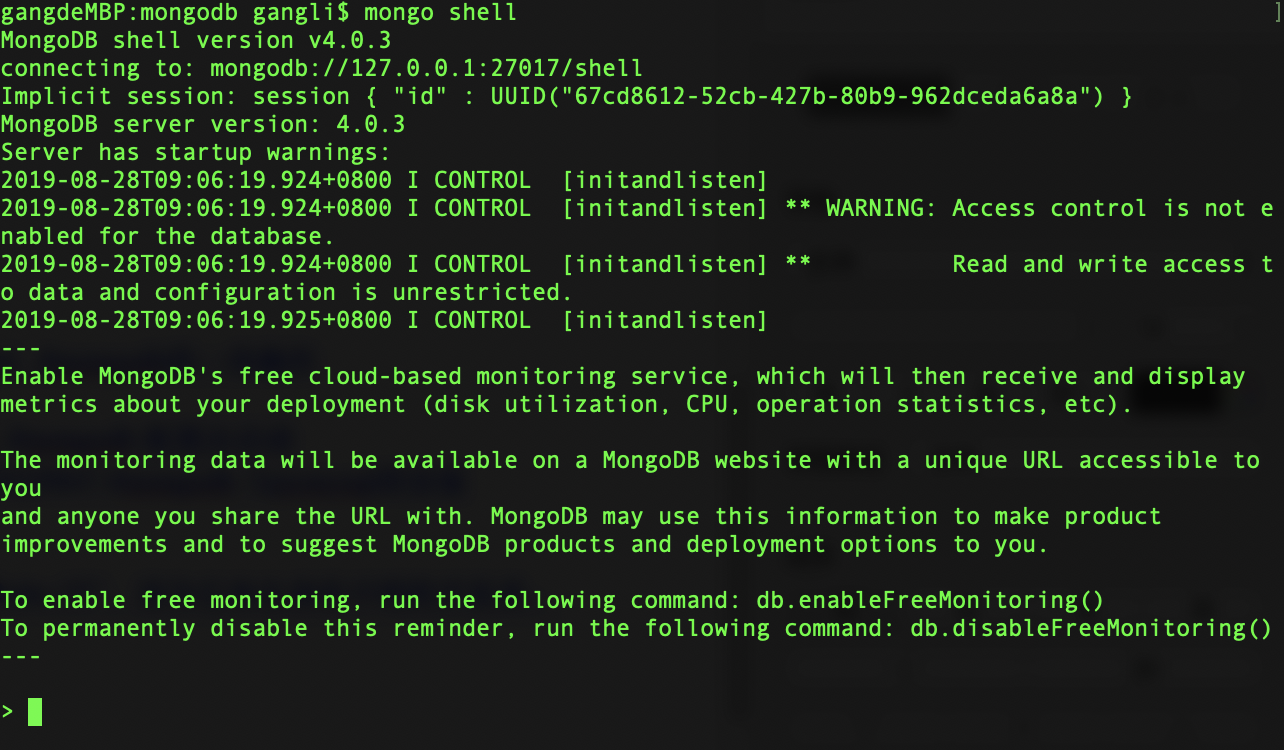运行 命令: mongo shell #进行链接