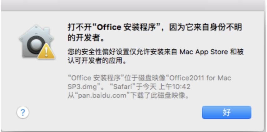 安装程序之后系统回提示:打不开“ xxx安装程序”,因为它来自身份不明的开发者。如下图。
