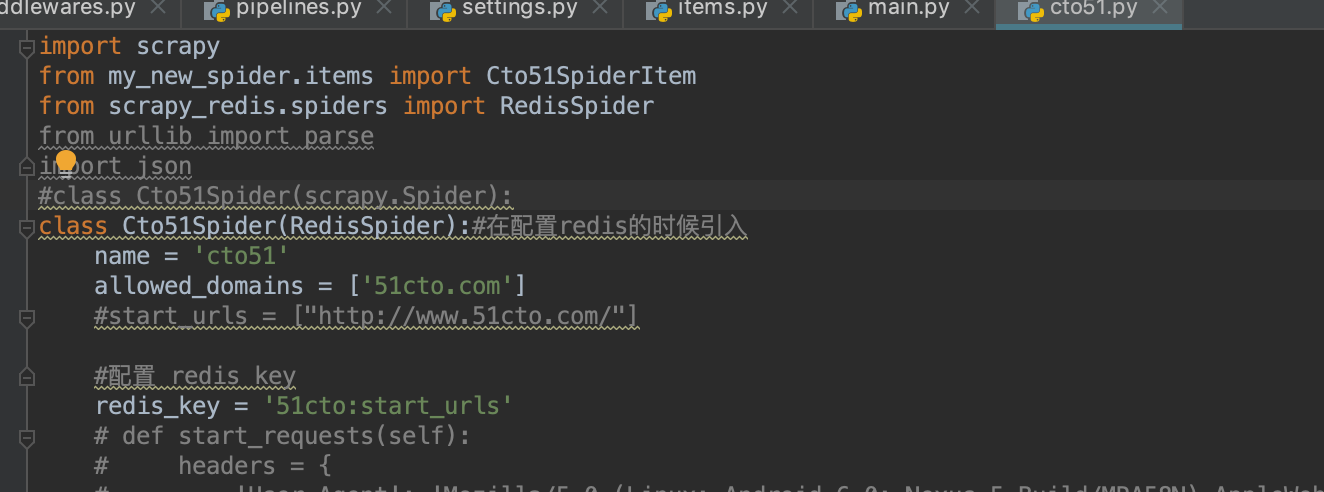 一个是继承类:由scrapy.Spider修改为RedisSpider