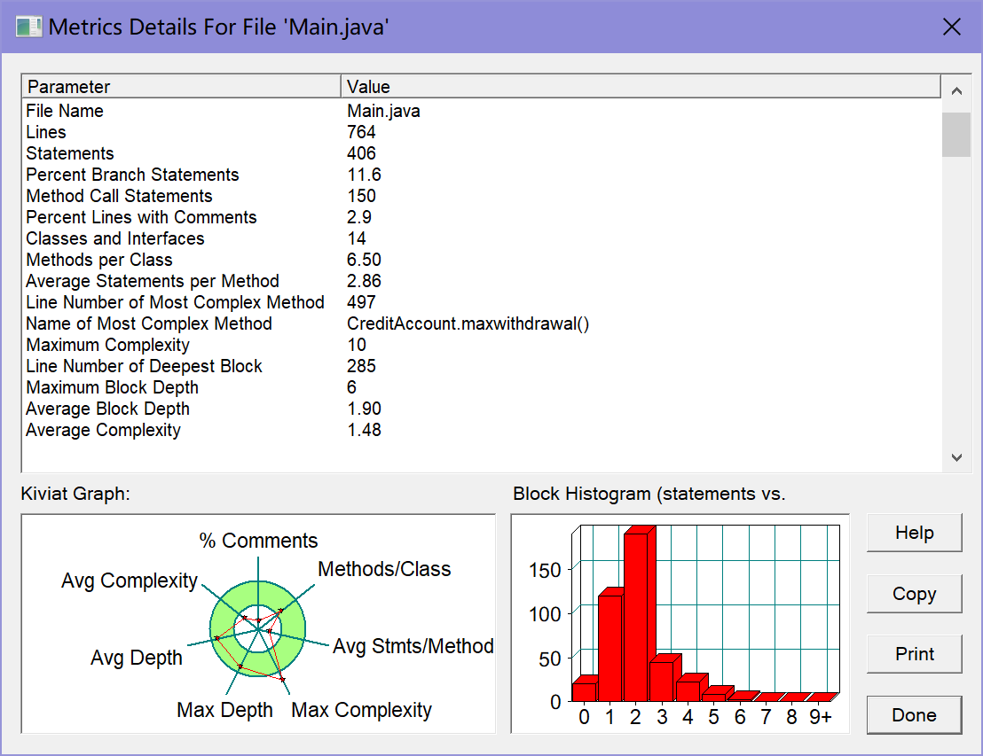 由上图可以看出两次代码的复杂度差1,而且复杂度都过了10,说明这个代码仍可以改进,让复杂度降得更低。以上是我对ATM机两次作业的相关分析,两次代码,一次是要求自己完成,另一次是老师给出了上一次作业的代码,让我们自己看懂代码再做改进,实现银行跨行取款的功能。