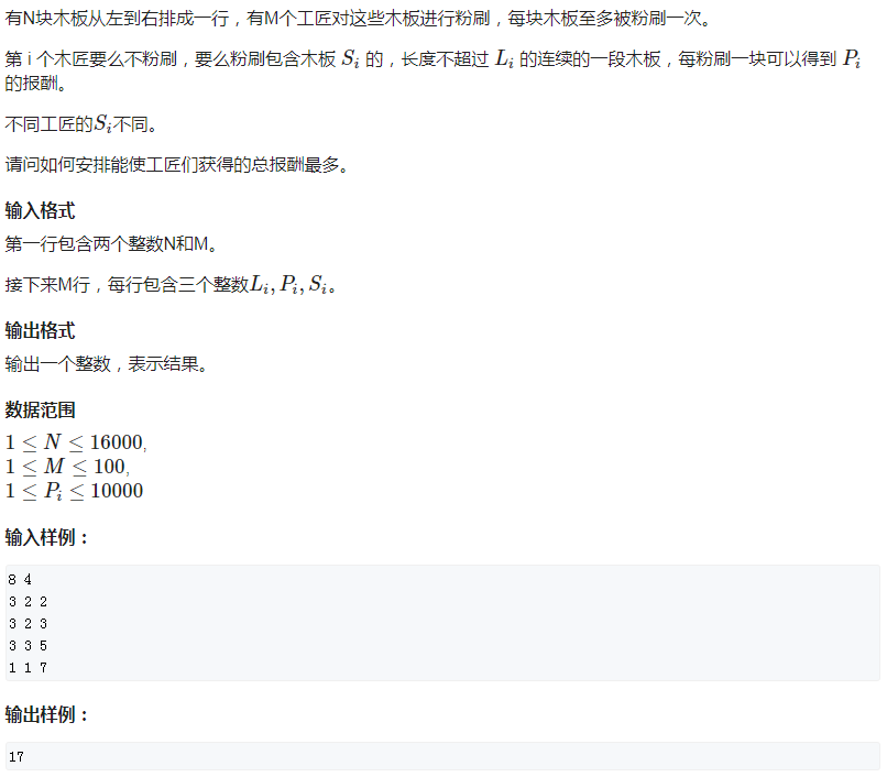 f[i][j]=max(f[i][j],f[i-1][q[l]]+(j-q[l])*a[i].p);
