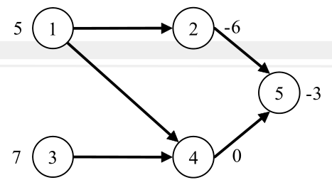 - 其中有最大权和的闭合图是 {3,4,5} ,权和为 4。