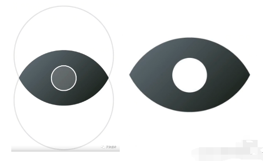 或者是两个圆形先执行相交的操作,再减去一个圆,一个眼睛就形成了。